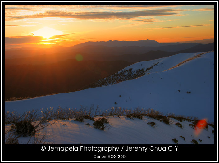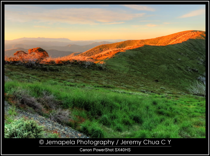 In December 2012, an avid cyclist friend and I went to the countryside northeast of Melbourne to cycle a section of the Murray to the Mountains rail trail. This trail is over 100 km of sealed off-road trails linking the towns of Milawa, Wangaratta, Beechworth, Rutherglen, and Bright. We concluded the day’s bicycle ride at Bright which is close to Mount Hotham, and did a drive to the top of Mount Hotham to catch sunset. Rising to 1861m, Mount Hotham is the highest altitude mountain in Victoria for skiing. Popular and busy in winter, Mount Hotham is very quiet in summer but it still offers spectacular scenery of the alpine countryside. After an overnight stay in the town of Bright, the next day we went up Mount Buffalo National Park nearby and walked to Ladies Bath Falls.